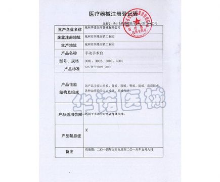 手动手术台登记表