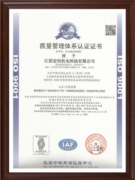 | 持证单位: 江阴宏恒机电科技有限公司 |