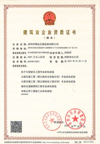 资质单位: 深圳市博远交通设施有限公司