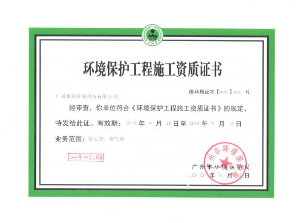 | 资质单位: 颖创环保---上海分公司 |